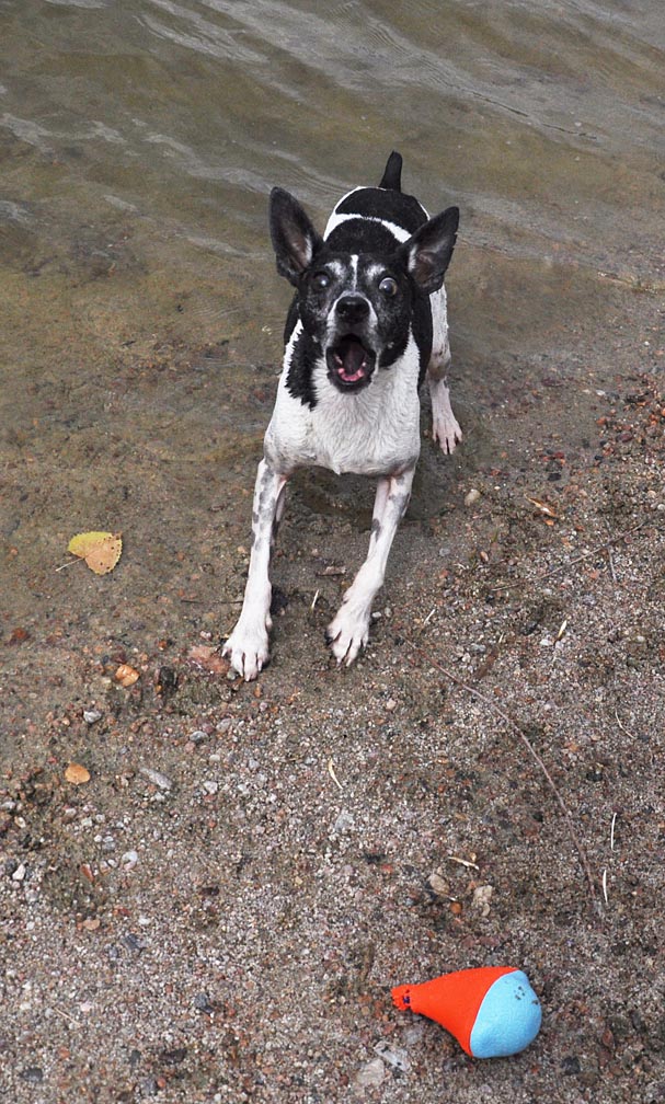 Meanwhile, Nik’s out there, nearly blind himself, totally missing the toy that is inches from his head. Luckily, he knows right/left, come/back so I can direct him to the target:
