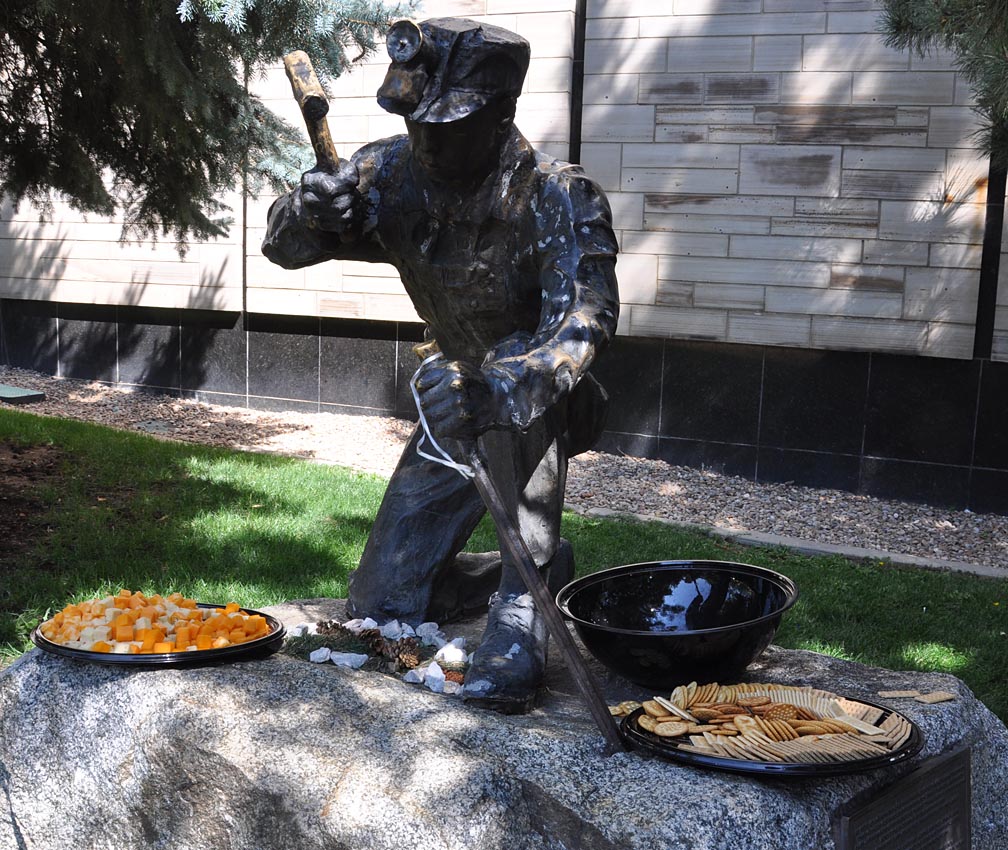 On to Boulder for a good chunk of the day. I didn’t know what to make of this — just in front of the Boulder Courthouse. This miner statue was surrounded by platters of cheese and crackers and a big empty bowl. There were no people anywhere nearby. And the cheese had a look like it had been sitting for at least a couple of hours, maybe overnight. Perhaps someone made a donation to the homeless people in the park but they still hadn’t discovered it? Or maybe this was some Day of the Dead like tribute / celebration to a dead miner in the family? Very strange. And I have to wonder just what was in the big bowl.