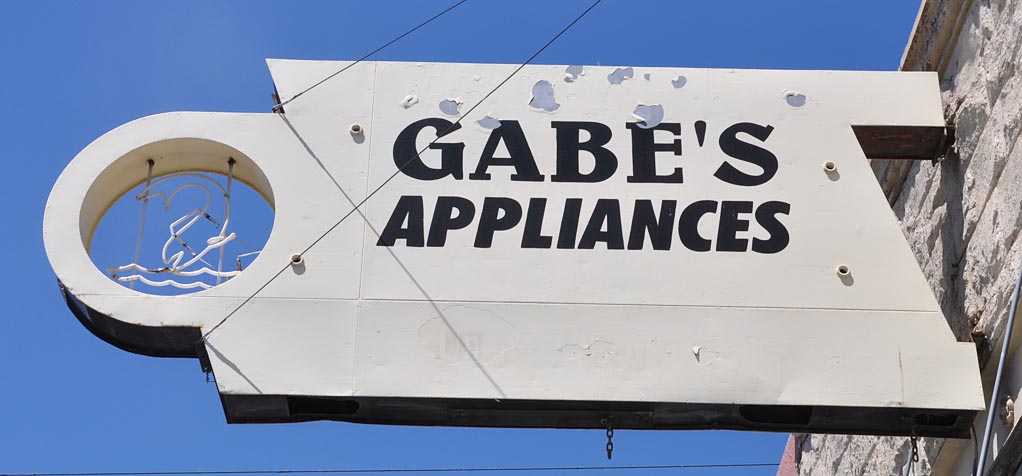 Gabe’s was originally a hunting & fishing store — hence the fishie inside the circle: