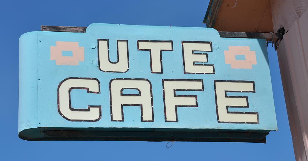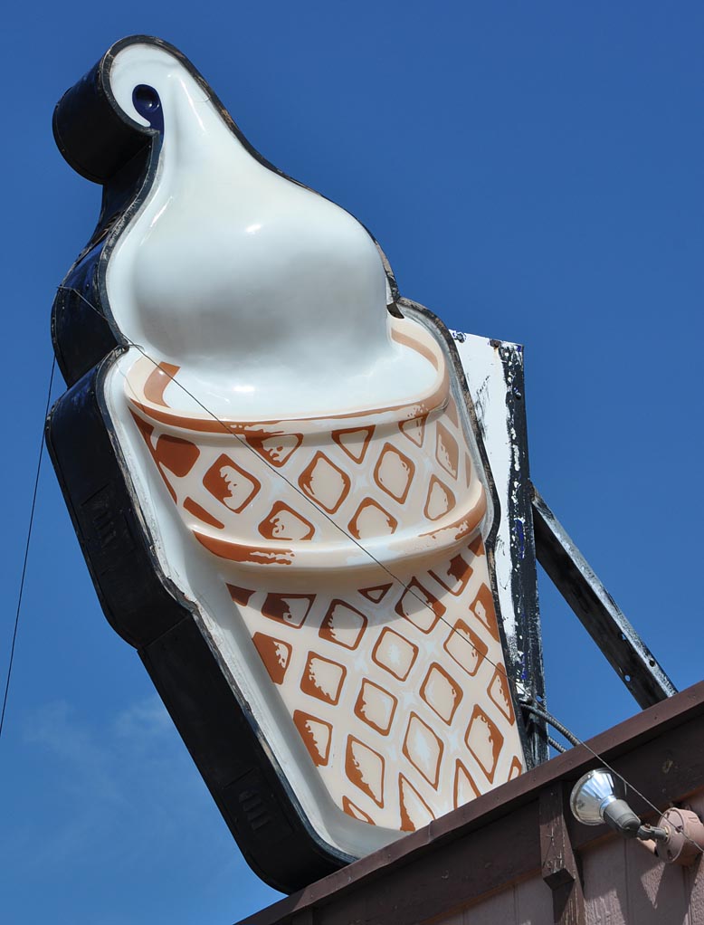 From Fort Garland: a Tastee-Freez cone sign lopped off from its horizontal text sign and reused here by Old West Cafe: