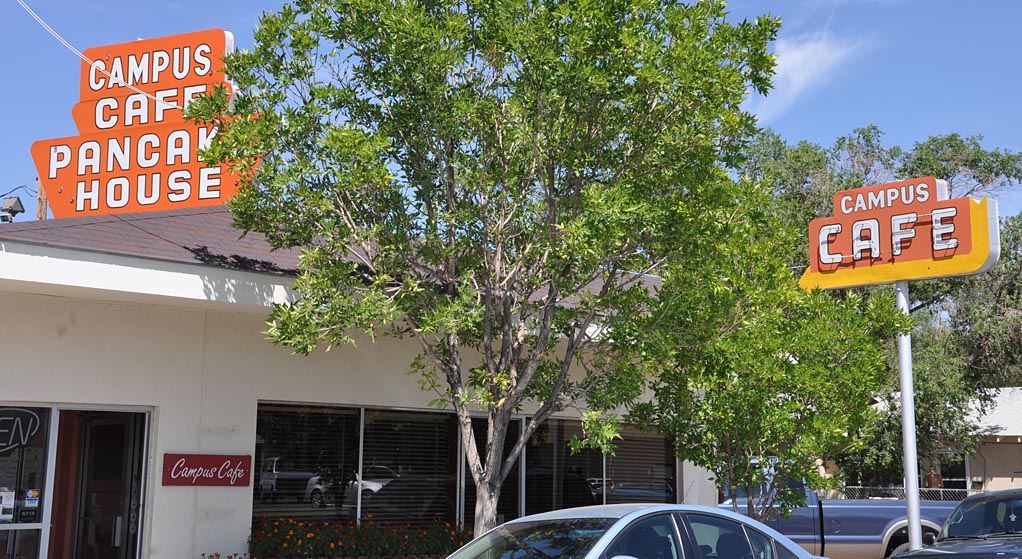 On to Alamosa. The “Campus” is a reference to the nearby Adams State College. We all know two signs are better than one. The restaurant is on a side street and I guess they thought this would help make them more visible: