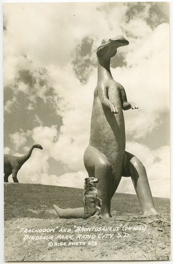 We started the day in Rapid City. And one of my goals has always been to replicate the vintage scene here at the Dinosaur Park with my own dogs: