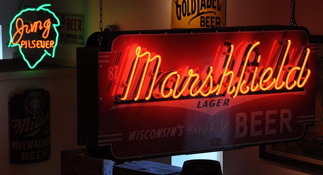 On to one of today’s high points. I went to Potosi to shoot the giant beer can and what was supposed to be “a couple of signs in the museum”. Uh, seems there are a LOT of signs in the brewery museum and restaurant. And far more than that — all kinds of advertising, bottles, collectibles, etc. I was told all the stuff in the museum is on loan from various collectors so the displays change all the time. Truly fantastic — add it to your list folks. Potosi is close to Dubuque, IA if you have any plans of heading that way: