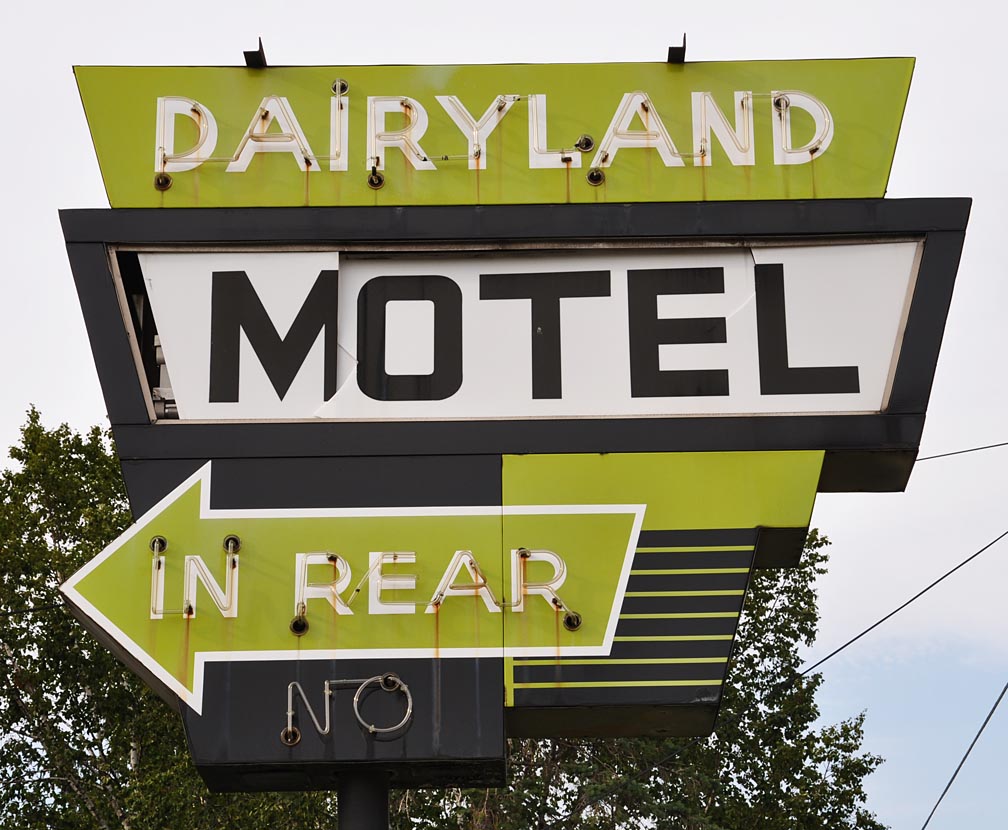 A fun modern sign south of town. The yellow strings are neon. Must be neat at night but I can’t find any photos of it:
