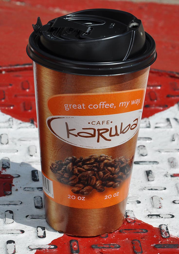 I didn’t get any food shots today — but I’ll share with you my favorite beverage experience of this trip. I’ve become a diehard fan of Kwik Trip for all my caffeine and bathroom needs. They are everywhere. And they are some of the cleanest, most welcoming, organized gas station c-stores I’ve experienced over the years. I head right for the dark roast, a little half & half and I’m back on the road. It’s not as strong as Starbucks coffee (not seeing them in southern Wisconsin) but more powerful and better tasting than your typical gas station coffee. Posed here on one of those underground gas tank covers: