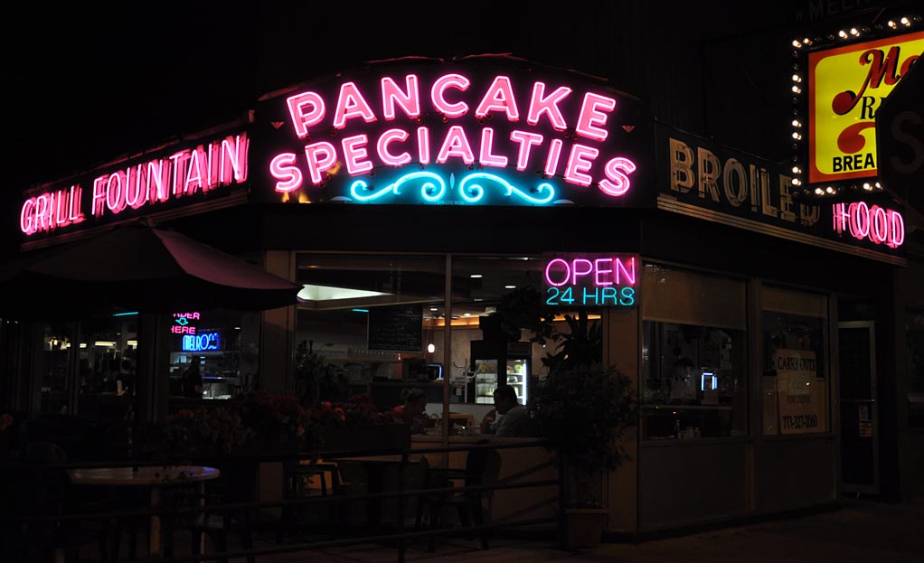 Then it was on to Chicago area for some night shooting (the reason I fell behind in my posts). This was pretty much on the fly — no list. I just put together about a dozen stops at places with signs that I knew should be lit. Some of them weren’t but maybe they were closed for the day and turn their signs off when they lock up.