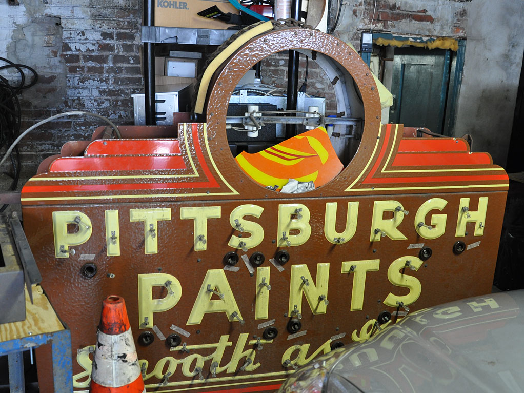 And then on to today’s main event. I had an early morning “date” with Len Davidson who lives in Philadelphia. Neon collector, restorer, artist, historian. And nice guy. He’s also the author of “Vintage Neon” — a must have book for anyone that loves neon signs. Pricey — but photo-rich and worth every penny since you’ll keep it on your shelf the rest of your life: