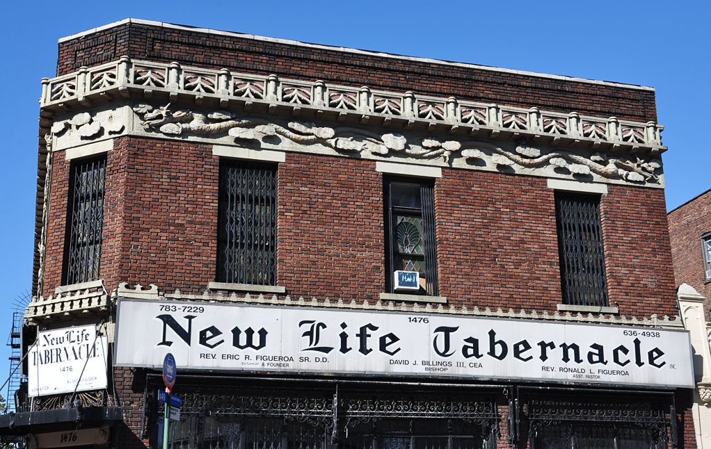 I have a long list of stuff to shoot in NYC that I never got around to or desperately need reshooting for the website. But with planning & packing & some crappy weather, I only managed to sneak off for a few hours yesterday to get about a dozen stops in. Let’s start the photos with one from Crown Heights — the neighborhood east of mine. Considering my big move and all, the business is appropriately named “New Life”… A neat frieze with a dragon — heads on both ends: