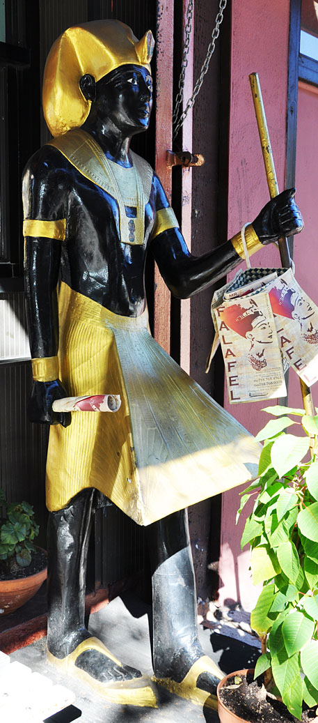 A Park Slope (Brooklyn) icon. I’ve been eating at Mr. Falafel on and off for more than 20 years. This guy’s been standing in front of the restaurant since well before that. And given the neighborhood’s transformation (old mom & pops replaced with chains) in the past few years, it’s a miracle the restaurant and statue are still there: