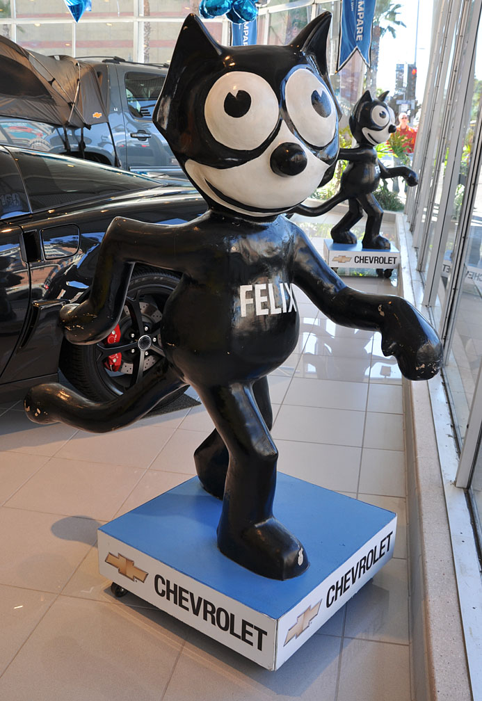 I went downtown to see what they’ve done to the Felix sign (see Flickr photos tonight). And also to shoot the statues inside which I had missed the last time I was there. A salesman said confidently that they (there are three of them I think) are from 1927. As I was taking this photo, a car came flying around the corner and hit about five cars parked directly in front of Sparkle. Bumpers and fenders flying everywhere. I was greatly relieved when I ran outside to see we didn’t get a scratch. Thank God! I’ve had enough hell just getting that bumper replaced when I was rear-ended.