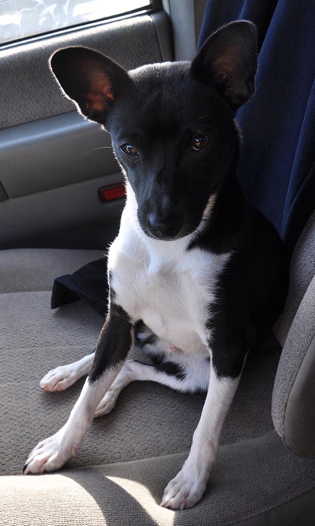 First off — let’s meet the new kid. Not to worry, I have PLENTY of roadside photos for you, too. After moping around for a few months after losing Grip, I found myself drawn to Petfinder and came across this dog which I couldn’t put out of my mind. I emailed and had hoped that he’d been adopted but nope. They’d had him a couple of months and no inquiries. So, off to the desert I went to meet him — and that was that. I’m back to a pack of four dogs. I’ve had the guy about two weeks and he’s blended in well. He’s about 10 pounds and probably around 10 months old. Most likely a Rat Terrier — though this much black is pretty unusual. He was “Pappy” at the shelter and then “Ulysses” at his foster home. I’ve named him “Griz”, short for “Griswold”.