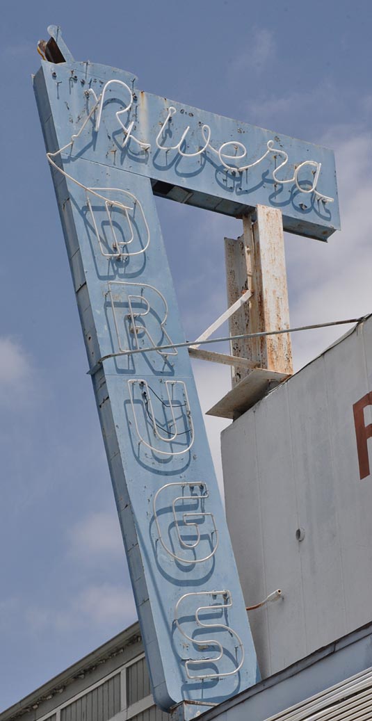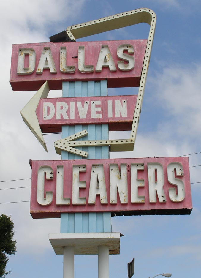 And let’s close out with some neon from Pasadena. This is a nice rooftop sign. Here it is by day: