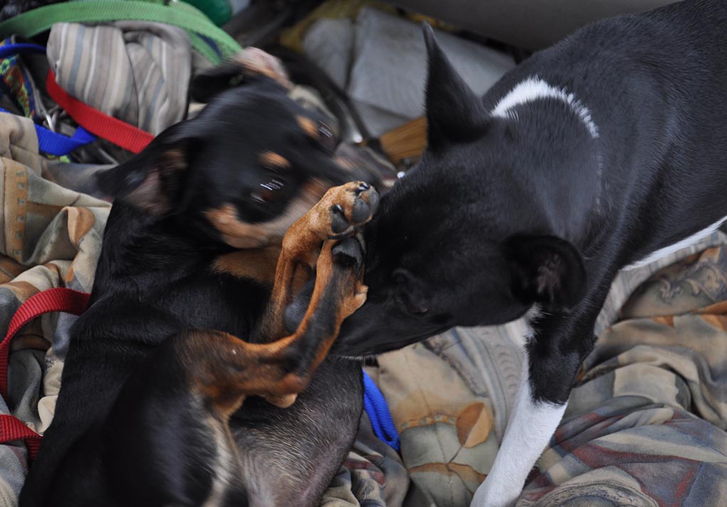 Grem may be six years old but she’s still got enough spunk & energy to wrestle for hours a day with this young whipper snapper. He’s a little bigger but she’s definitely in charge. An over the shoulder shot while driving today: