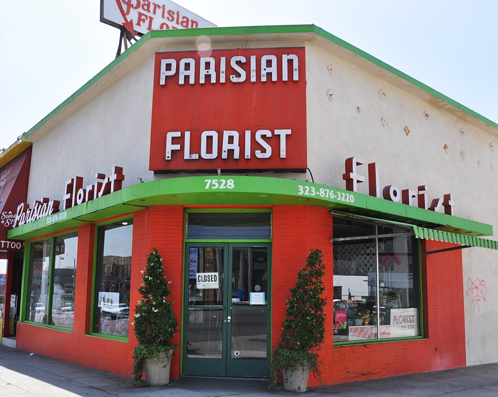 Sorry about the sun flare. There was originally a neon rose between “Parisian” and “Florist” on the orange sign — see this link: