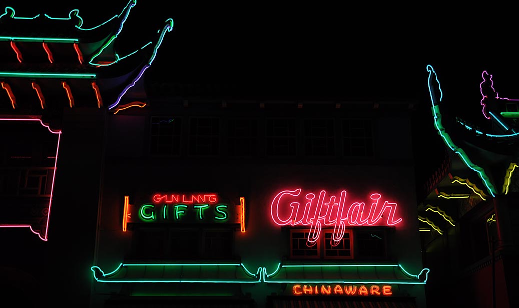 Friday night after work, I got a little bit of neon shooting in. This one’s just west of downtown Los Angeles. I think it’s still unknown what this sign originally advertised for. And I was surprised to see it lit:
