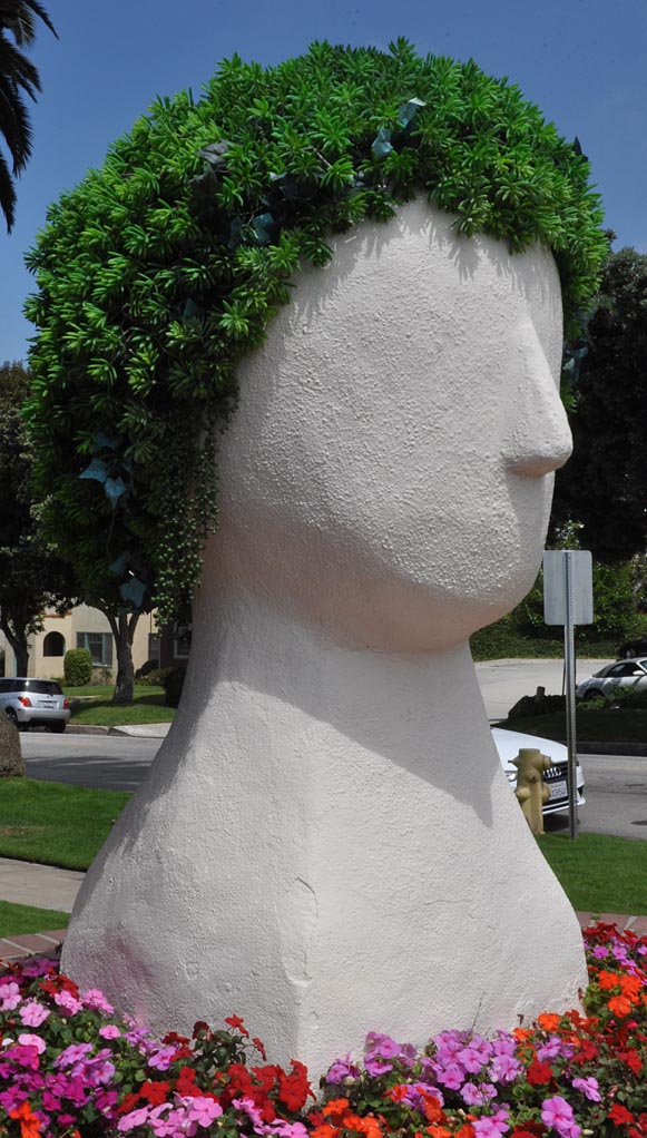Still Redondo Beach. Next to Joe Oliveri Hair Design. This head is BIG. The “hair” is fake (not real living greenery):