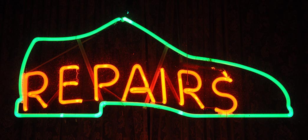 From L.A. near the Fairfax District. A skeleton (window) sign at Roberto’s Shoe Repair. Simple and amazingly wonderful in my opinion: