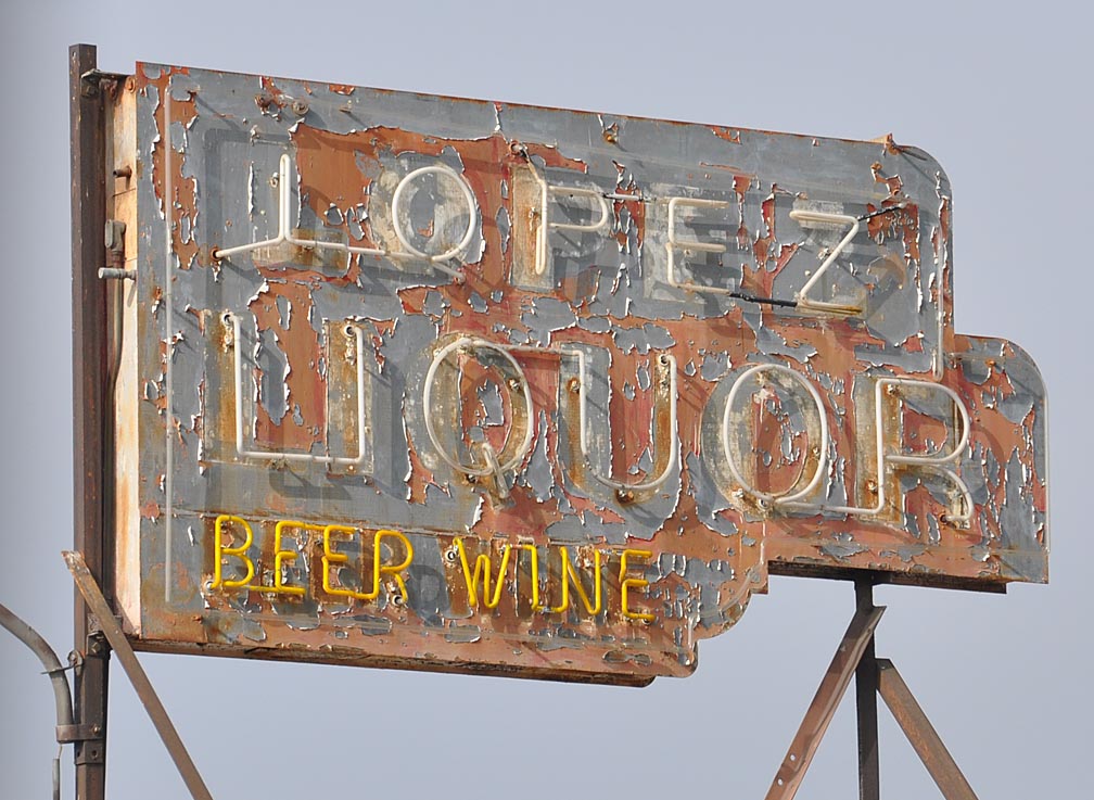 If it’s rusty crusty signs that you like, I’ve got plenty of them. Let’s start with a couple from La Verne. This is now Fairplex Liquor but the sign still hovers in the background: