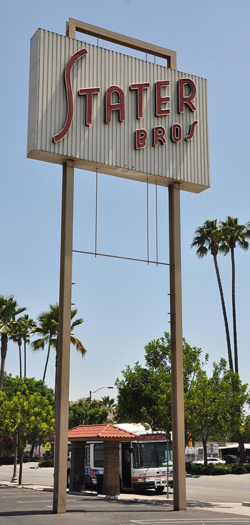 I’ve seen a few of these giant old Stater Bros. supermarket signs in SoCal. But most of the stores have updated them with modern boring signs. This one in Riverside had TWO of these older neon signs: