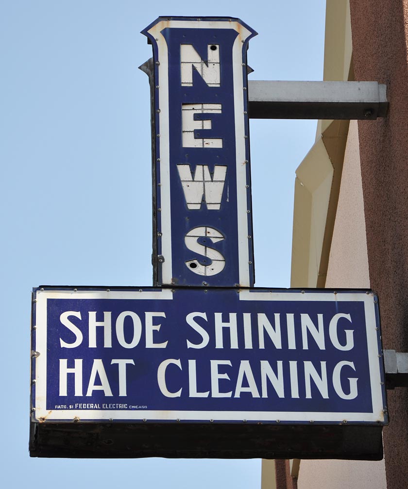 And now we’re in San Bernardino for the duration of this post. This one’s got lots of nuances — so give it more than a glance. Note the way the sign post splits from the top. The irregular shape of the “San Bernardino” part, the angle of the roof, etc.