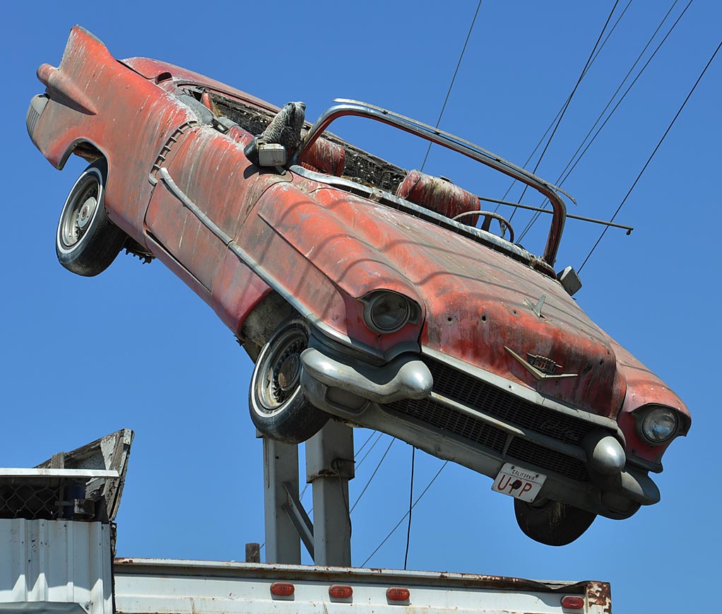 Some other things of note — this car looms over the entrance. It’s W-A-Y up in the air: