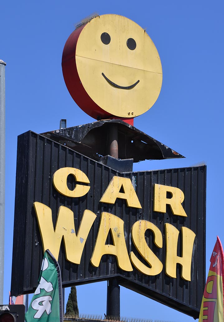 One of the hundreds of “reshoots” on my list for this weekend was the steel “thing” at U Pick Parts in Sun Valley. The “thing” is what’s left of the Laurel Canyon Car Wash sign which was designed by Armet & Davis. Here’s a vintage photo of it at its original location in North Hollywood: