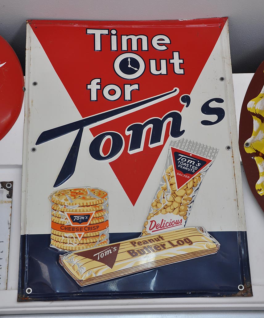 Normally, you need to be part of a group and have an appointment. But Mark and his wife were gracious enough to let me have a quickie private tour. Here’s just a sampling of his stuff — loads of porcelain enamel signs — with some non-gas stuff here and there: