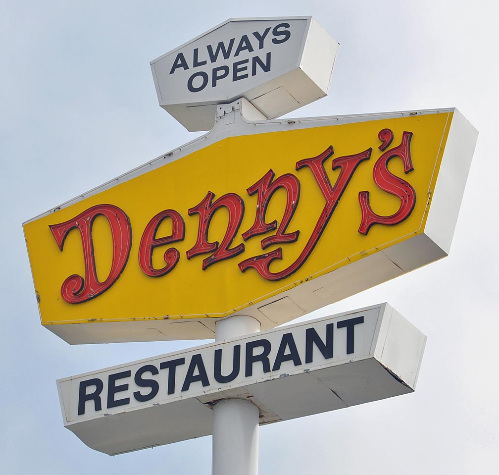 From San Clemente in the fog — a well-preserved Denny’s sign: