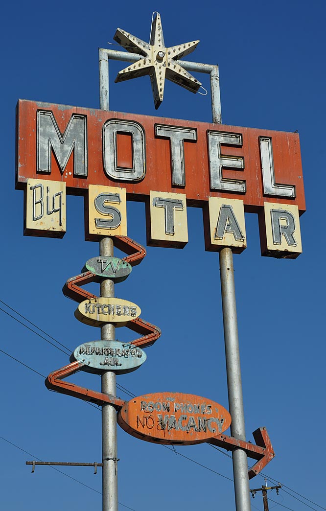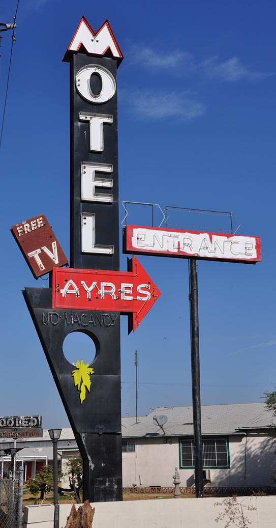 And back to Fresno. Here’s a vintage postcard of the California Motel with this sign:
