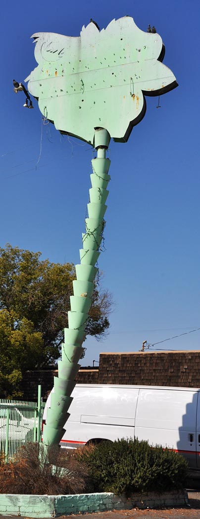 Originally, the Leilani restaurant — a tiki place. The building is still there but I’m sure no Polynesian flavor inside. This palm tree sign had nice detail: