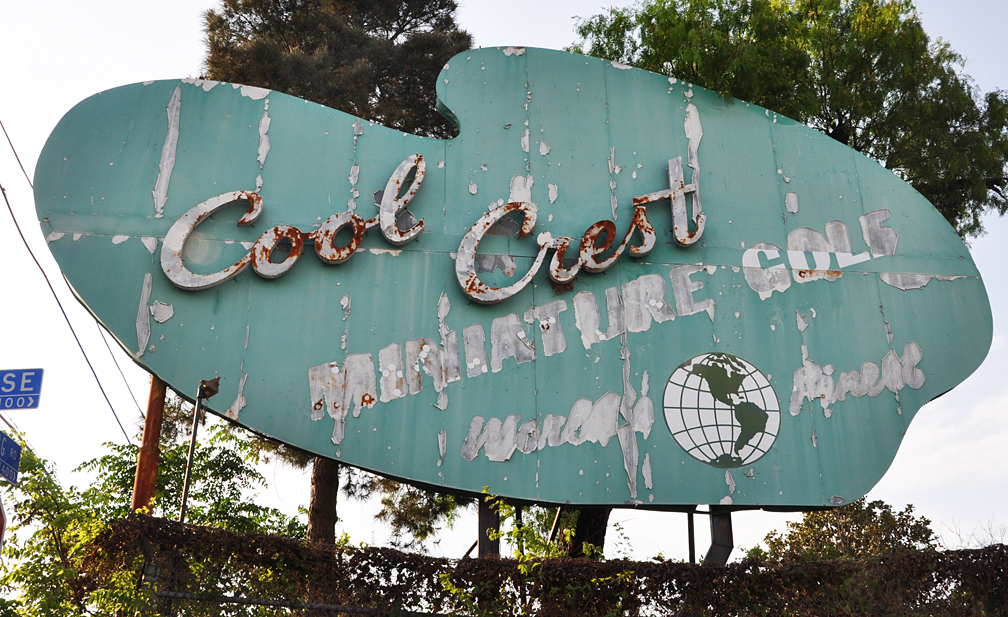 One more mini golf happy ending story — the Cool Crest course in San Antonio, TX which opened in 1929. It closed in 2007 and was looking miserable for years. It seemed absolutely doomed. Here’s my photo of the sign from 2011: