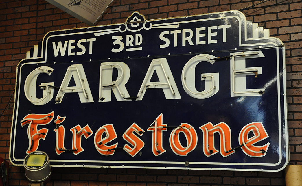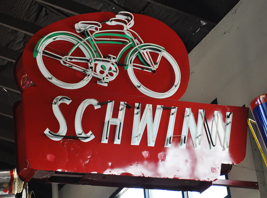 But I was there mostly to see the signs. LOTS of neon signs. But very hard to shoot since pretty much all of them are stuck way behind the cars. I did what I could to hop the ropes & take some quick shots — expecting alarms to go off or personnel to see me on hidden cameras. Luckily, nobody came to yell at me or arrest me. This one was one of my faves: