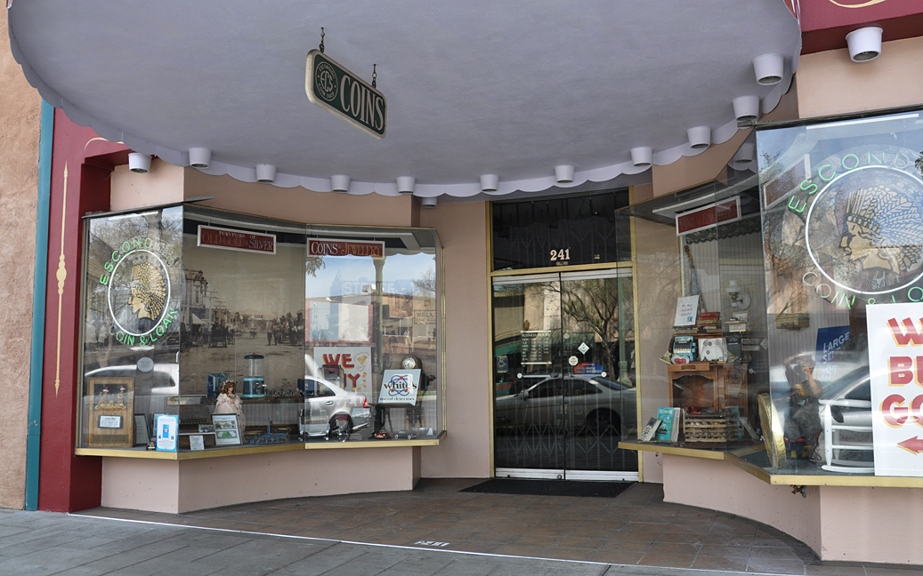 Back on the road — still in Escondido. This wonderful circus tent like sign/building houses Escondido Coin & Loan. I can’t find anything on-line about what this was originally: