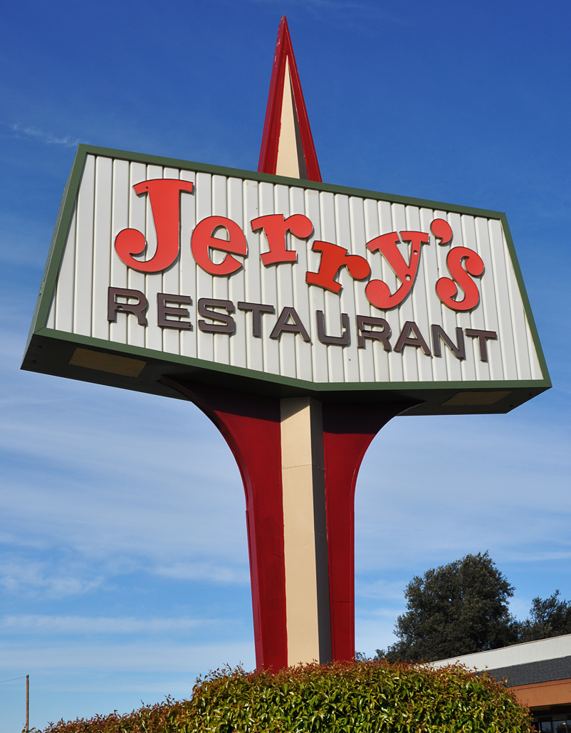 From Morgan Hill – a former Sno-White Drive-in. The sign and building have been adapted. More examples of these signs and building (and a photo of what this Morgan Hill sign looked like originally) at my site here: