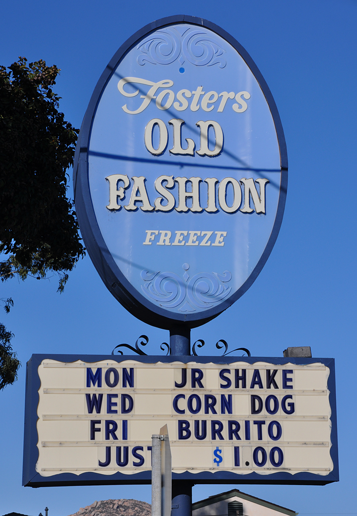 Lots of photos to share — let’s start with this one in Morro Bay. These plastic oval Foster’s signs are even rarer than their earlier neon cousins. More about Foster’s Freeze and lots of photos at my site here: