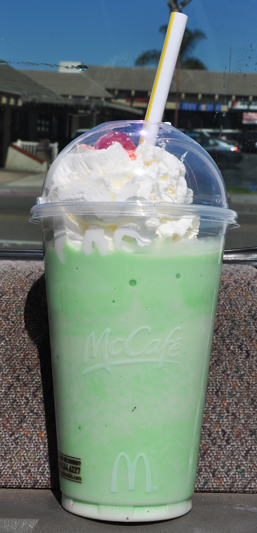 While many of you are still dealing with snow and cold, it was in the 80s this past weekend in San Diego. I decided to have a Shamrock Shake from McDonald’s. I never eat at McDonald’s — but this was a nostalgic moment. I haven’t had one of these in more than 30 years. I don’t even remember it being minty. I just like the color. And it was refreshing and filling. They didn’t serve it with the whipped cream back. It was just a simple paper cup: