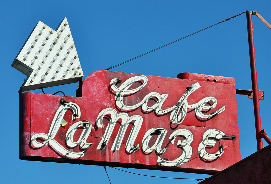 and yes, a mammoth, double-sided neon sign on the roof. I don’t believe it’s lit at night: