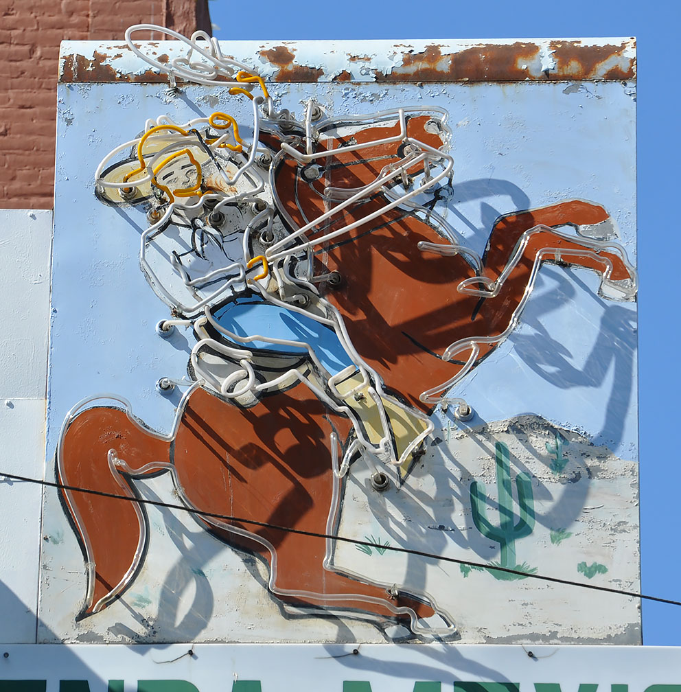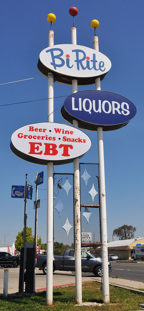 The Century Bowl in Merced. The bowling alley is long boarded up. The “coming soon” illustration on the sign at the right shows a KFC, a gas station, a 24-hour restaurant — but not this gigantic sign. Shoot it now, folks:
