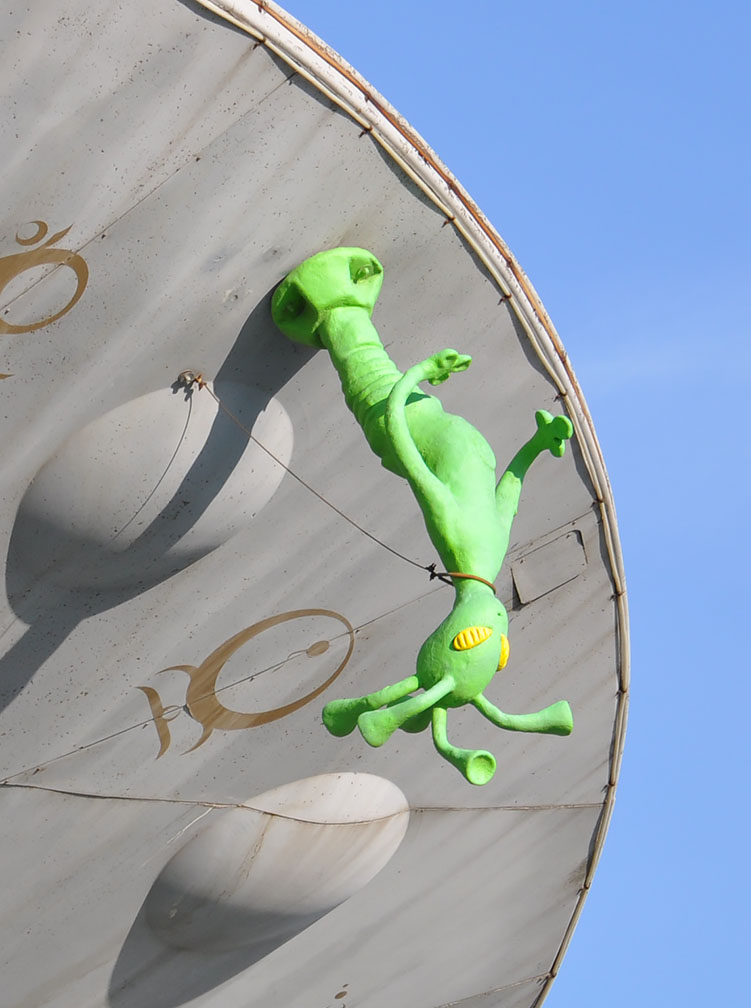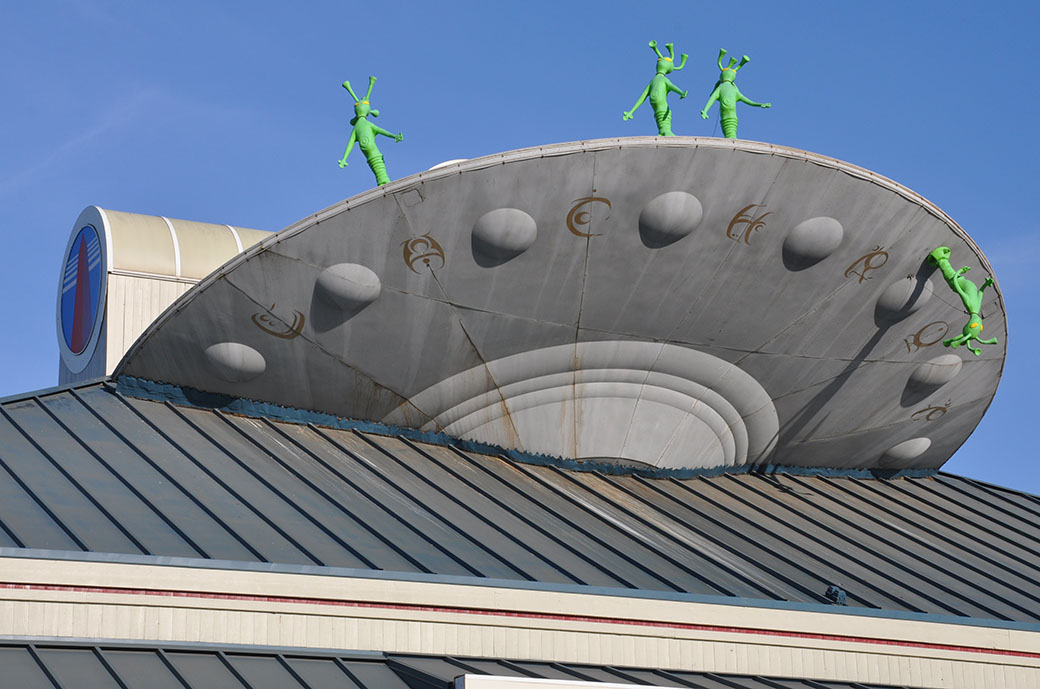 Lastly, from Lathrop — this UFO has crash-landed on the roof of the Tower Mart gas station where I filled up for the long journey home: