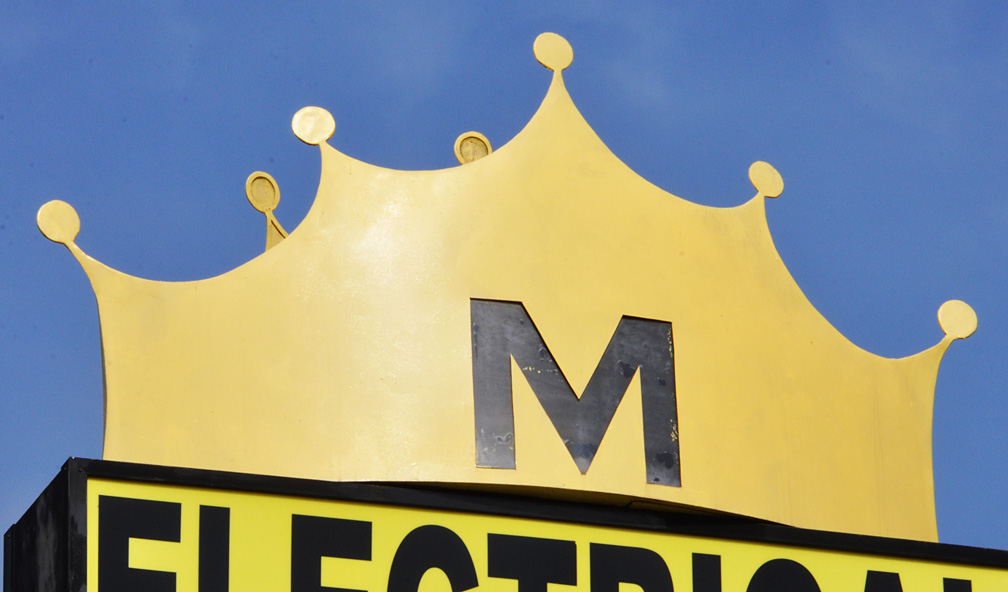 Also in Gardena — Majestic Lighting. This crown is wonderfully curved and I think the M might be (or was) backlit. How appropriate for a lighting place!