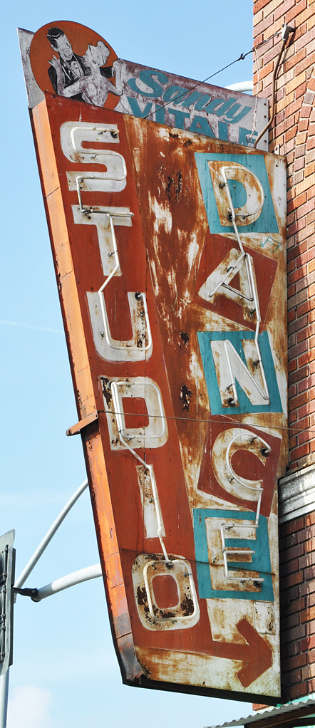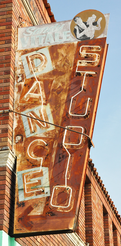 I’m betting all three of these signs were installed at different times. The bigger sign appears to be the oldest with those Art Deco style corners. It surely had neon and a far nicer paint job originally: