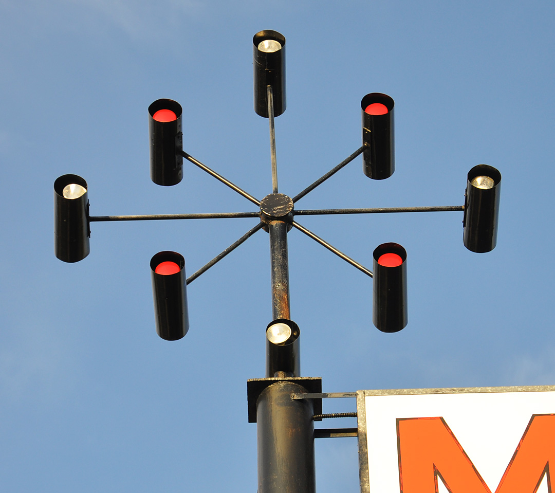 Last two for this post from Bicknell where I ran out of daylight. Way up on top of the otherwise boring Aquarius Motel sign. I’ve never seen one of these light thingies in action. I believe they didn’t spin but the lights were lit sequentially. Sure to catch the attention of passing motorists and low flying planes!