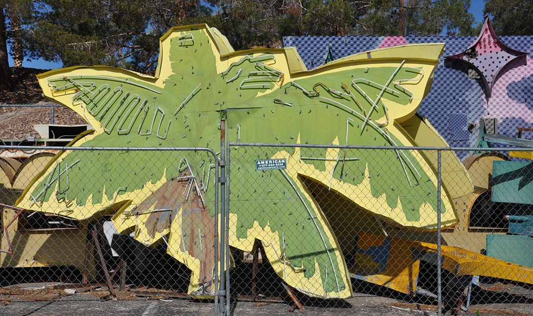 I stumbled upon a stash of signs just south of Cashman Center. The Neon Museum has lots of stuff in storage in “undisclosed locations” — so this must be one of them: