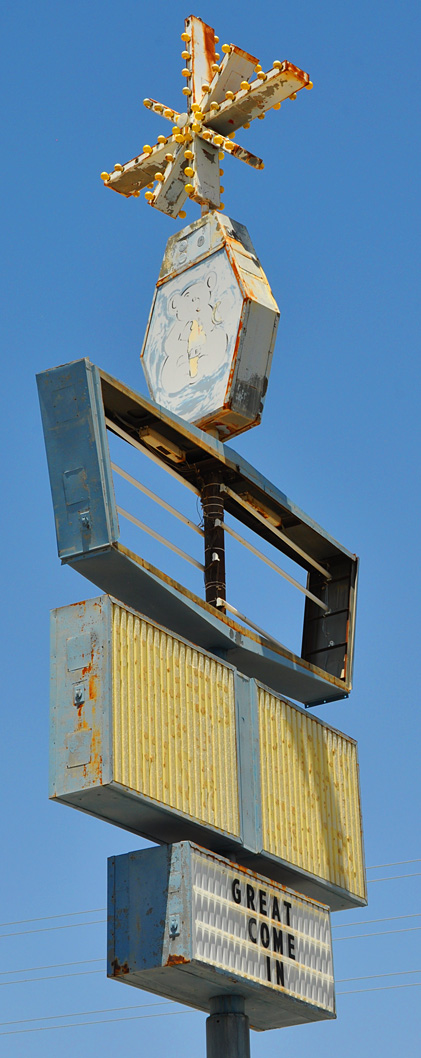 Did they really have to tacky-fy this sign with those plastic “crusing” and “Rte 66” add-ons? Gawd…