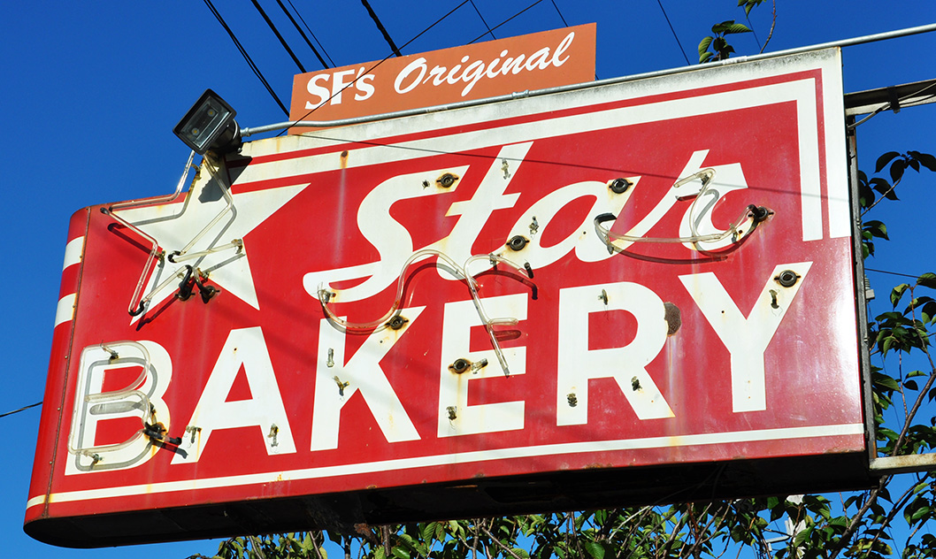 From San Bruno. Yes, I shared one with the dogs (jelly) to show my support for this well-maintained sign. To be honest, the donut was nothing special — but not bad either:
