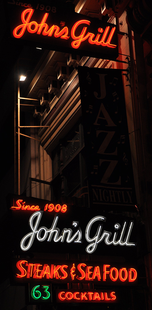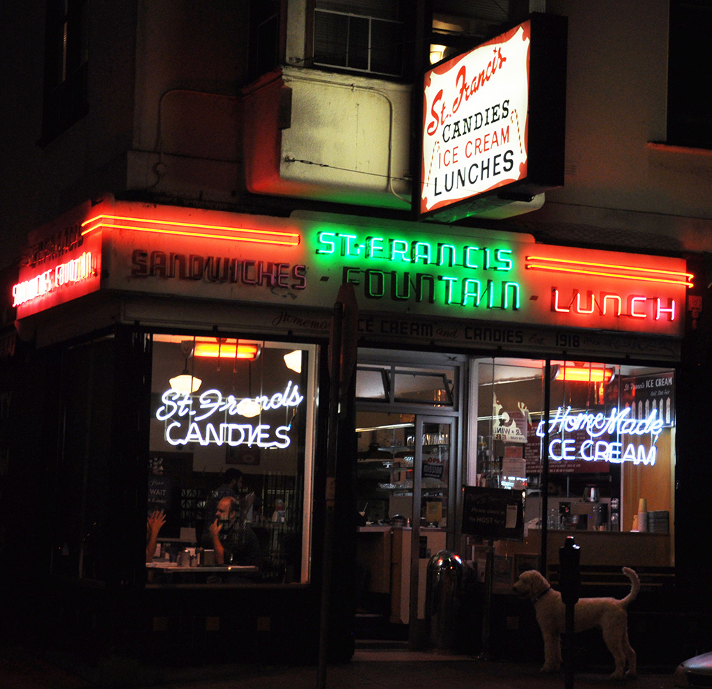 Some nighttime shots to close out this batch. Some neon is out but that’s okay. I like the patient Poodle in this shot, too: