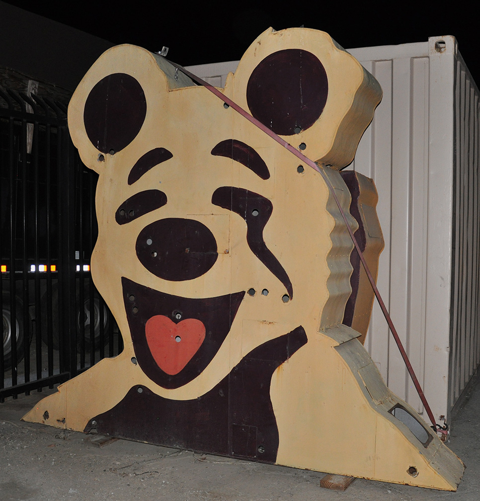 A new arrival — this Bear Manufacturing sign came from Santa Ana. More about these “Happy Bear” signs one-third of the way down my page here: