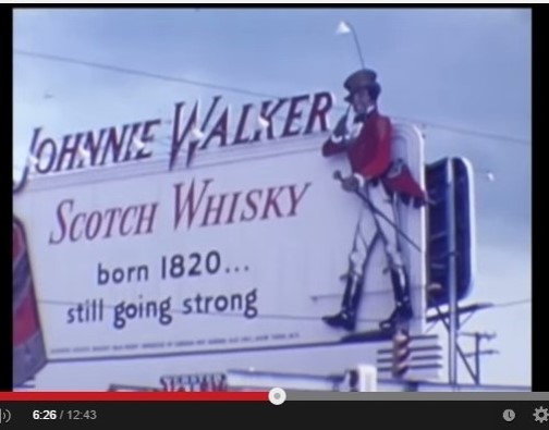 Nevertheless, I present to you: the Johnnie Walker sign. Perhaps the most mesmerizing mechanical sign ever built. Okay, maybe a tie with Vegas Vic and his two clones. All I know is the “Striding Man” apparently had two iterations: huge and huger. The huger was by my estimate about 50 feet tall. And his gigantic legs and arm moved. The sign was moved a couple blocks at some point. And according to one report, there was a similar sign in the 1950s in Miami. If anyone knows anything else, please contact me. I’m currently in love with this sign. Big time.