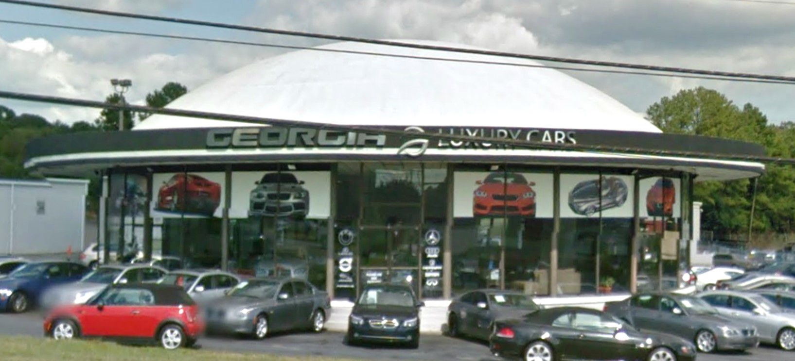 This showroom was built in the late 1960s. It sat vacant for years and I figured it would eventually be demolished. Dealerships are pretty ruthless about constantly upgrading their buildings and signs. However, thanks to Google Street View, I see that as of 2014, the building was housing Georgia Luxury Cars: