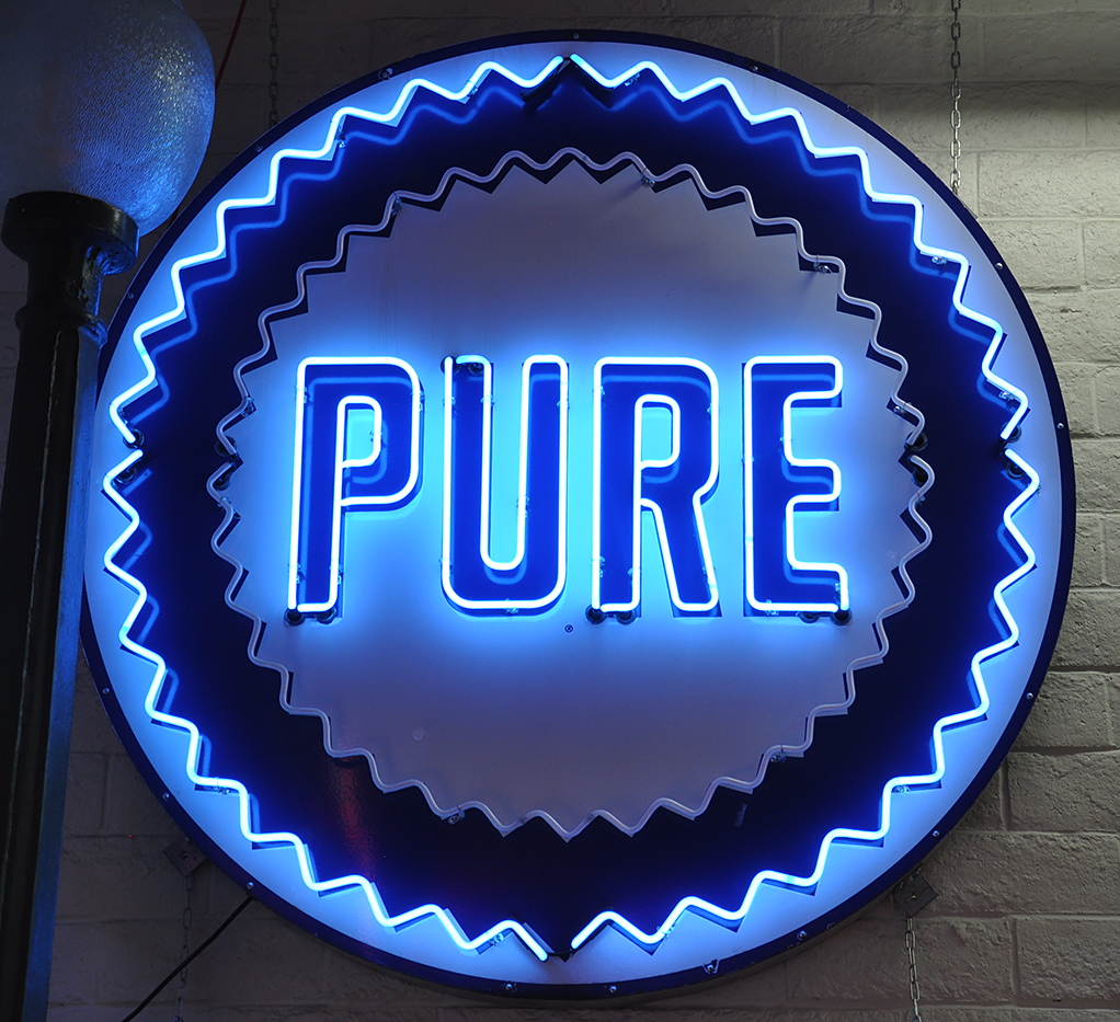 This Pure Oil gas station sign is a doozie. The zigzag rings flash separately and each letter lit sequentially. The price is $12,850: